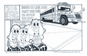 Buckleupallofus Creator, Jim Weicherding, uses his writing skills and submits article/cartoon featuring his BUS STOP KIDS for 1,000’s of Family Readers Reducing Injuries & Deaths related to Bus Stops, Buses, Pedestrian & School Safety.